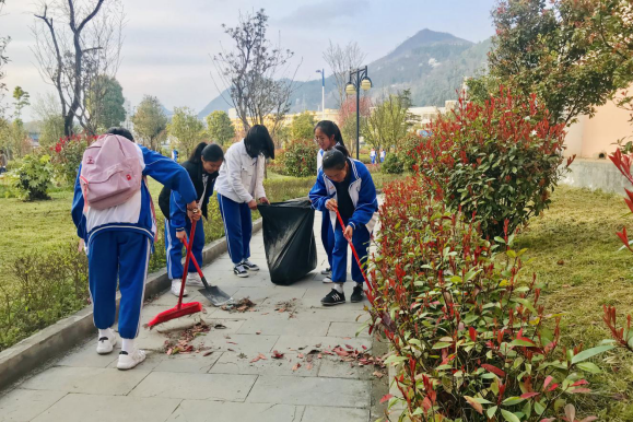 志愿者清扫落叶